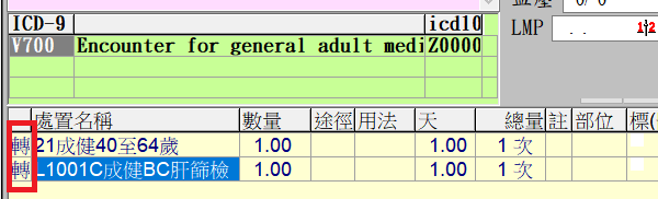 -檢驗(查)醫令前方填『轉』:表示該項檢體送檢,醫令費用由診所申報,需填報委代檢機構代碼