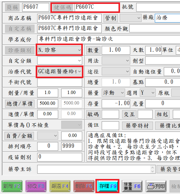 ● 於「F3診療作業」畫面下方按下『F12』或於『4藥品資料』新增醫令代碼