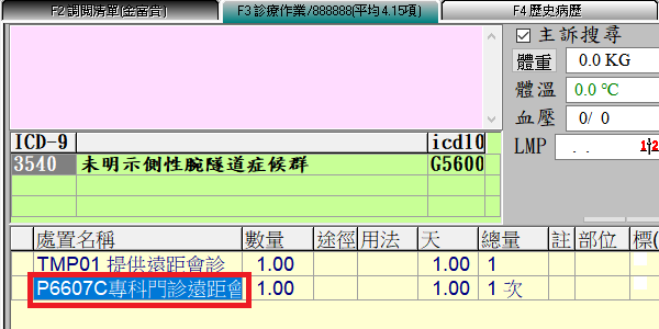 *TMP01:提供遠距會診*系統會預設自動帶入
