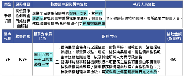 新增糞便抗原檢測胃幽門螺旋桿菌檢測服務健保卡掛號註記功能