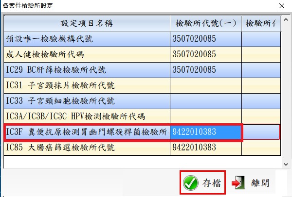 ● 設定執行院所配合檢測之申報檢驗所機構代碼