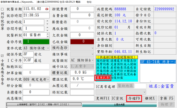操作說明: 配合公告預防保健新增HPSA健保IC卡掛號登錄註記及IC上傳功能