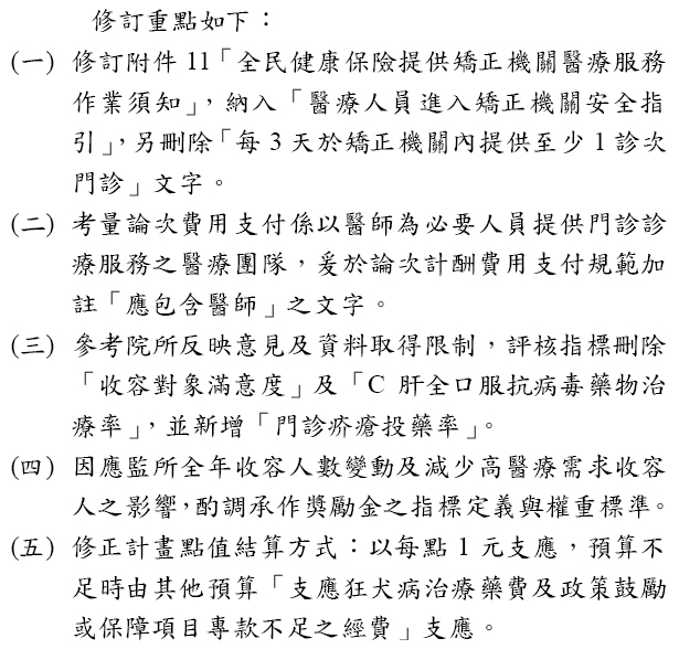 公告修訂「健保提供保險對象收容於矯正機關者醫療服務計畫」
