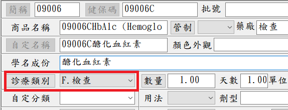 1. 確認藥品資料「診療類別」是否設定為「檢查」