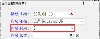 疫苗劑別預設為1,若有接種2劑以上需求者,點選「F3修改為2或以上劑次再按下「F9存檔即可!